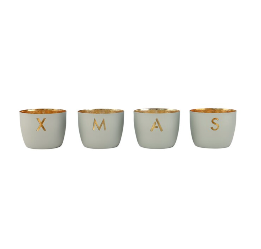 Stilvoll, festlich, stimmungsvoll – das Madras Windlicht-Set verzaubert Ihr Zuhause mit warmem Kerzenlicht und elegantem Design. Vier kleine Windlichter im sanften Flannel-Ton formen zusammen das Wort „XMAS“ – perfekt für eine moderne Weihnachtsdeko. Außen dezent matt, innen glänzend reflektierend, sorgen sie für ein edles Lichtspiel auf Tisch, Fensterbank oder Sideboard. Ein liebevolles Detail für Ihre Winter- und Adventsdekoration – schlicht, modern und festlich zugleich.